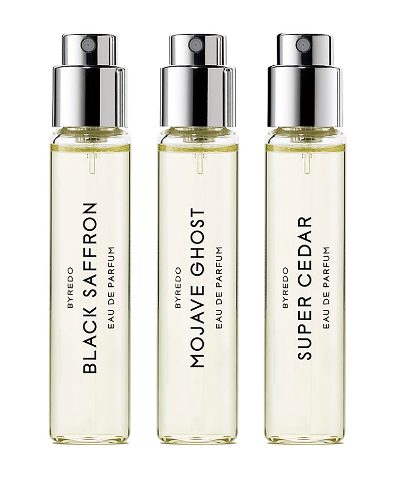 What It Is:La Selection Boisee is a presentation box of three woody iconic scents: Black Saffron, Mojave Ghost and Super Cedar. The vials are ideal to use with Byredo’s functional and timeless Necessaire de Voyage Leather Travel Cases (sold separately).Set Includes:- Black Saffron Eau de Parfum 0.4 oz.- Mojave Ghost Eau de Parfum 0.4 oz.- Super Cedar Eau de Parfum 0.4 oz.