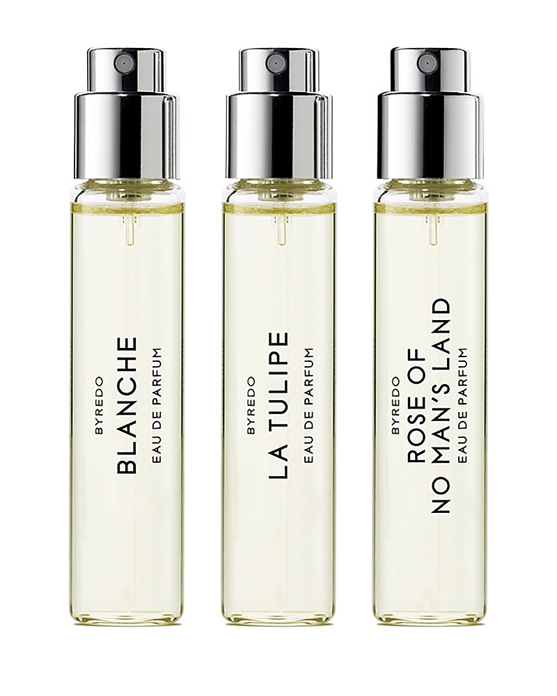 What It Is:La Selection Florale is a presentation box of three floral iconic scents: Blanche, La Tulipe and Rose of No Man’s Land. The vials are ideal to use with Byredo’s functional and timeless Necessaire de Voyage Leather Travel Cases (sold separately).Set Includes:- Blanche Eau de Parfum 0.4 oz.- La Tulipe Eau de Parfum 0.4 oz.- Rose of No Man’s Land Eau de Parfum 0.4 oz.