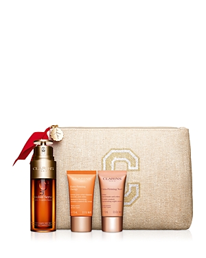 What It Is:Discover Double Serum, Clarins’ worldwide best seller, with this limited-edition set. Clarins’ most powerful serum is paired with Extra-Firming moisturizers that visibly firm, boost radiance and minimize the look of wrinkles with unrivaled results.Set Includes:- Full-Size Double Serum 1.6 oz.- Travel-Size Extra-Firming Energy Moisturizer 0.5 oz.- Travel-Size Extra-Firming Night Moisturizer 0.5 oz.- Cosmetic Pouch What It Does: