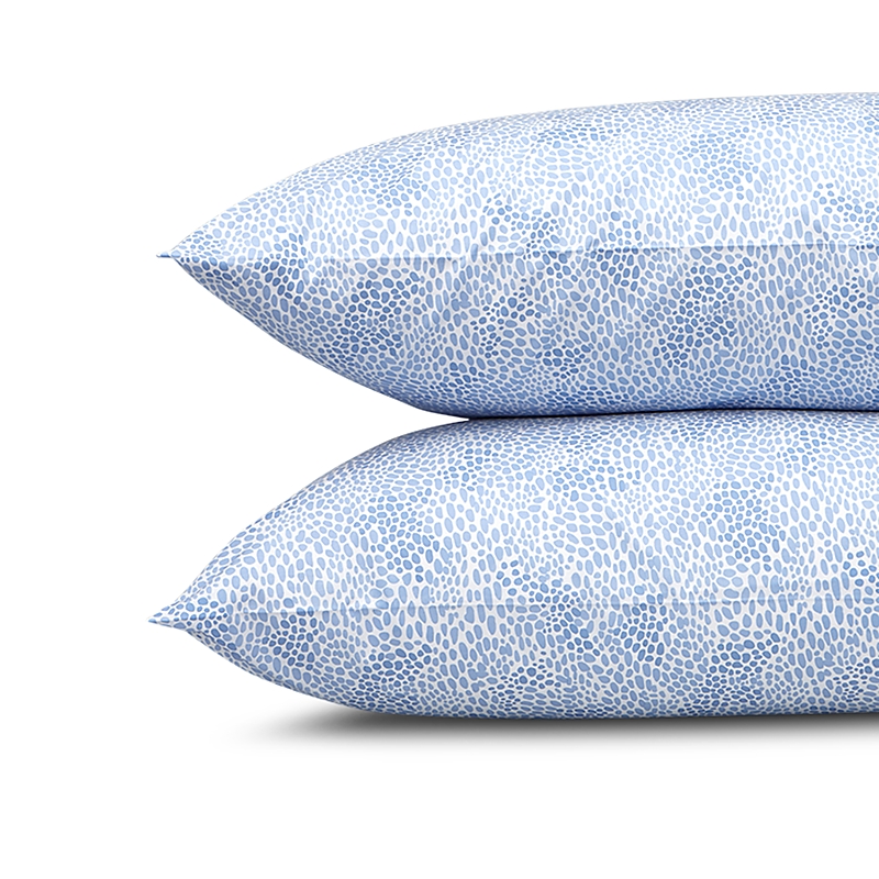 Crafted in soft, luxurious Egyptian cotton, these pillowcases from the Nikita collection by Lulu Dk for Matouk feature a small, abstract spotted print in pastel shades of blue and green, finished with a classic cuff.
