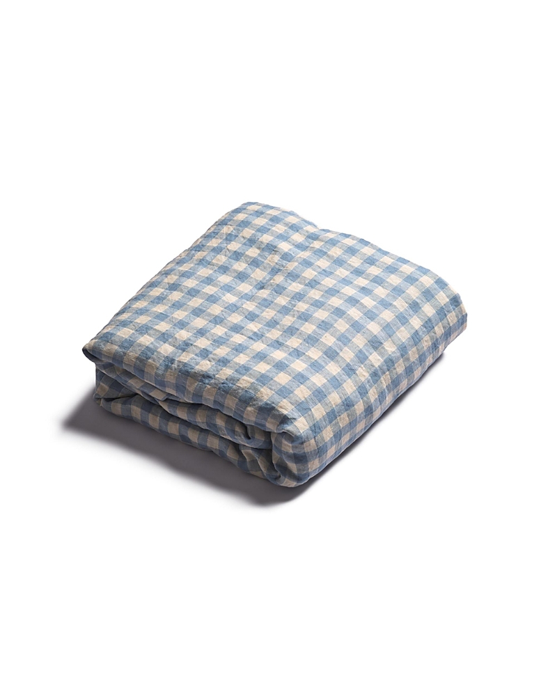 Piglet in Bed Gingham Linen Fitted Sheet, Queen.Color:Warm Blue Gingham.Size:Queen.Material:100% Linen.