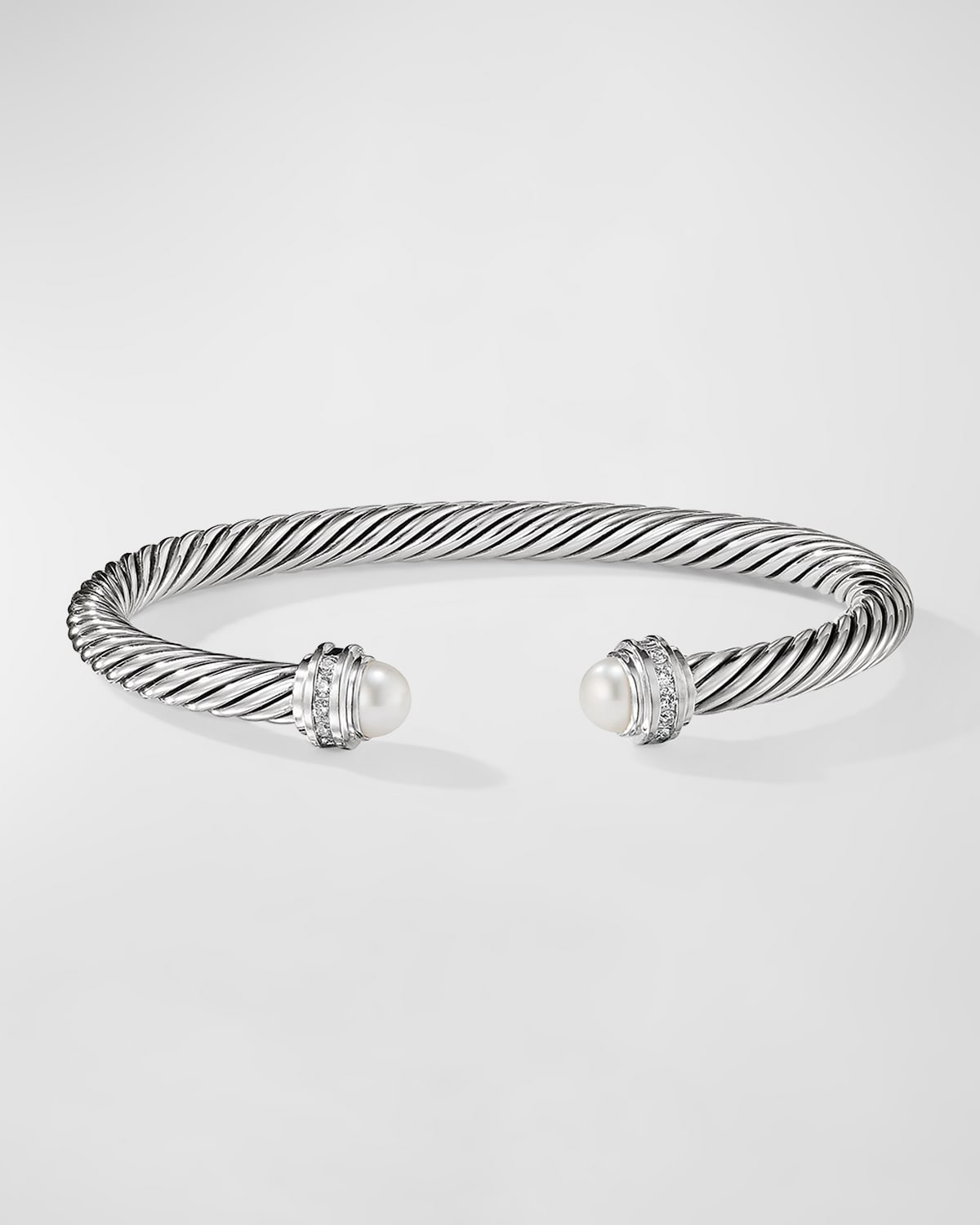 Sterling silver Naturally white freshwater cultured pearls, 5.75-6.25mm Pavé diamonds, 0.18 total carat weight Bracelet, 5mm Slip-on style Made in USA
