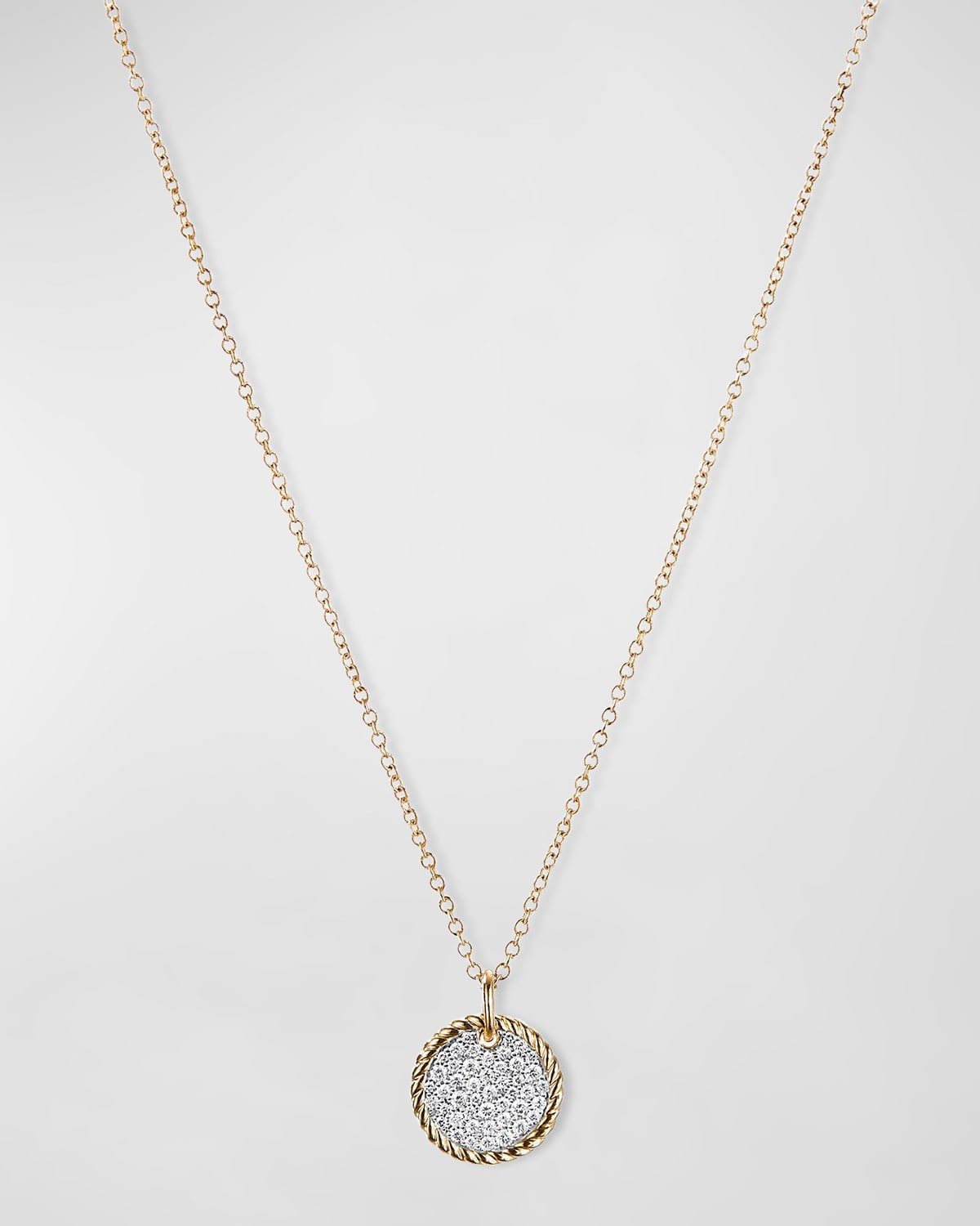 18-karat yellow gold Pav diamonds, 0.18 total carat weight Charm, 11mm (approx. 0.4") diameter Chain, 1.1mm wide, adjustable, 16-18" long Lobster clasp