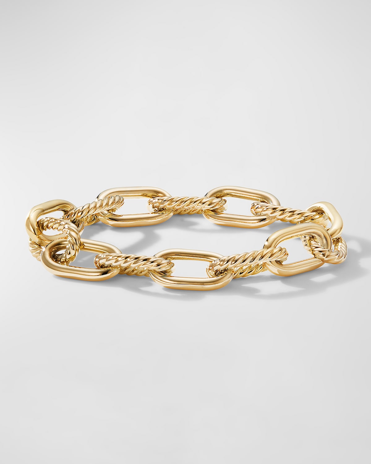 David Yurman chain bracelet. 18-karat yellow gold links. Approx. 11mm wide. Integrated clasp. Made in Italy.