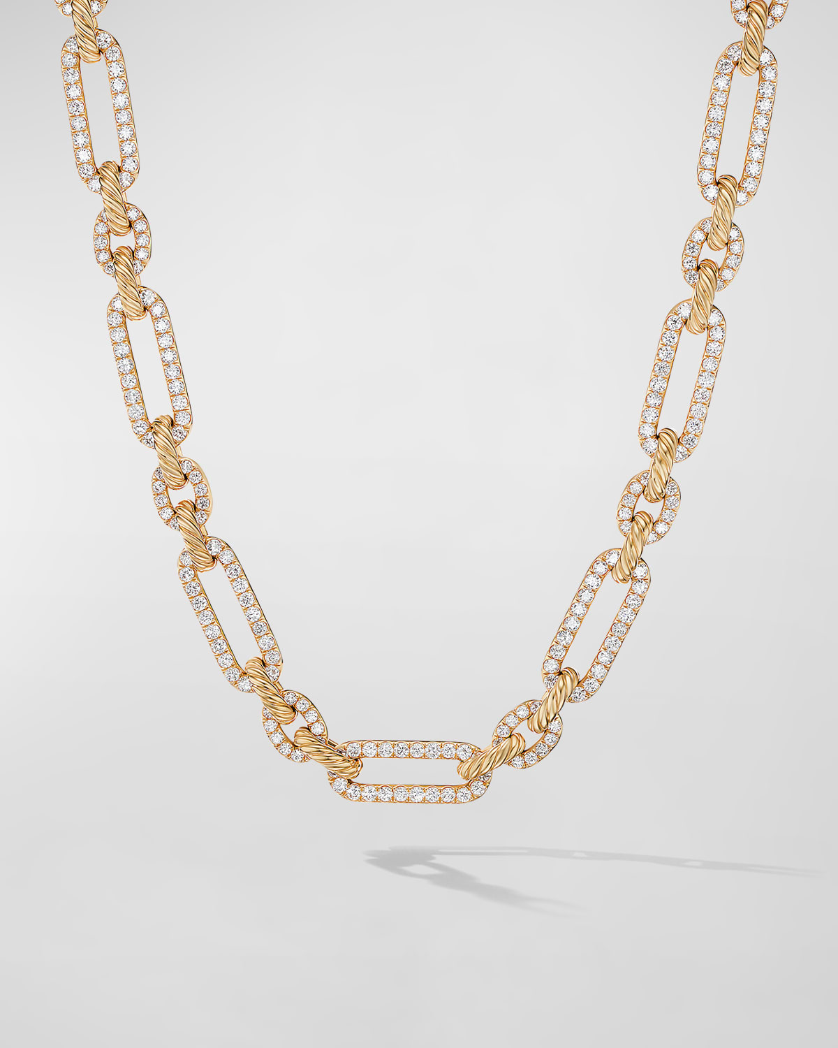 David Yurman necklace Necklace length: approx. 20 inches 18-karat yellow gold Pavé white diamonds 14.21 total carat weight Hidden push clasp Imported