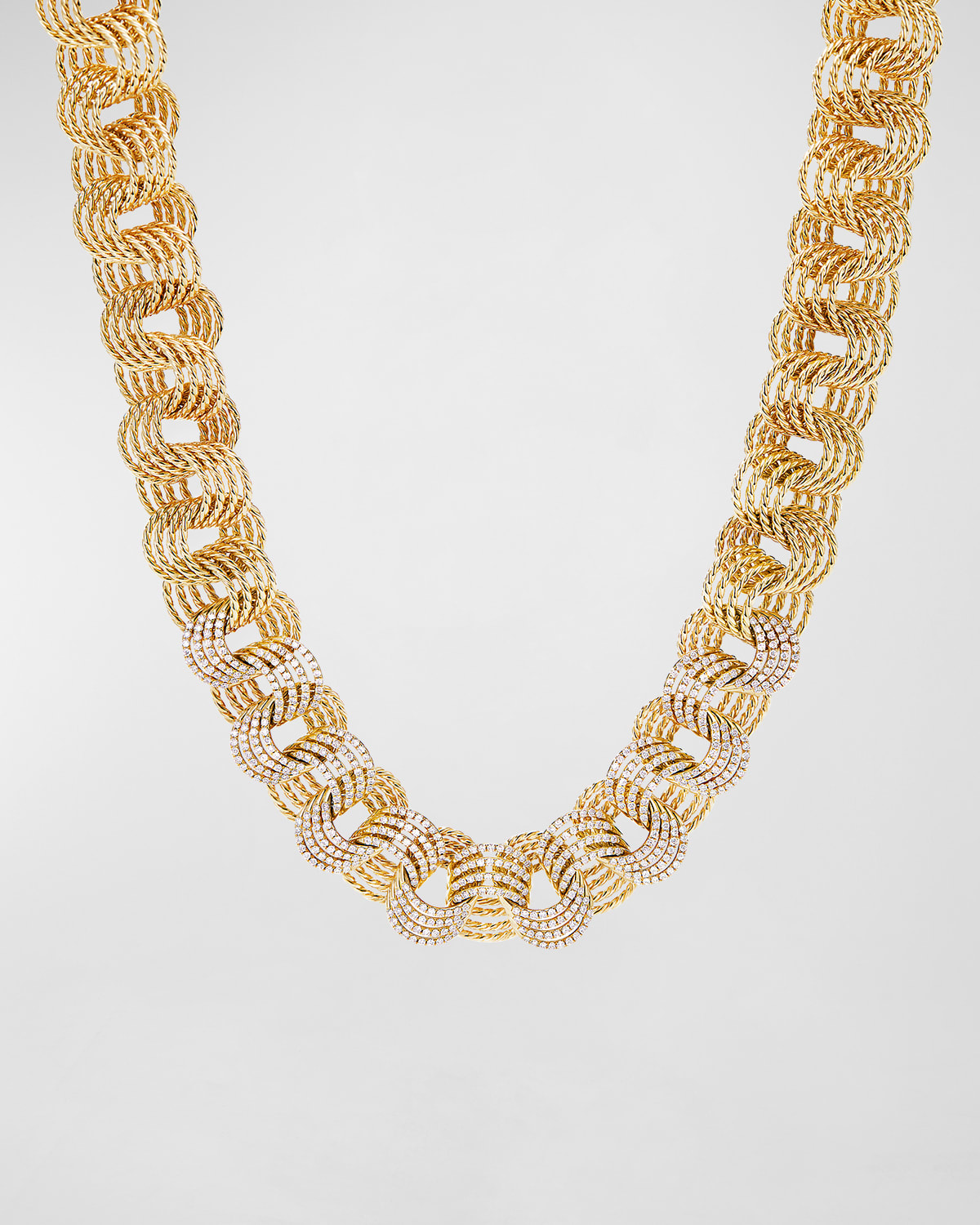 David Yurman small-link necklace. Cable textured 18-karat yellow gold. White diamond pavé detail at links. 2.46 total diamond carat weight. Approx. 17"L. Made in USA.