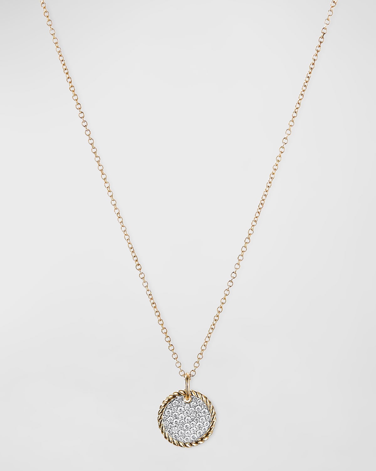 David Yurman necklace Approx. 16-18" long; 1.1mm wide; 11mm charm 18-karat yellow gold and pavé diamonds 0.18 total diamond carat weight Adjustable length Imported