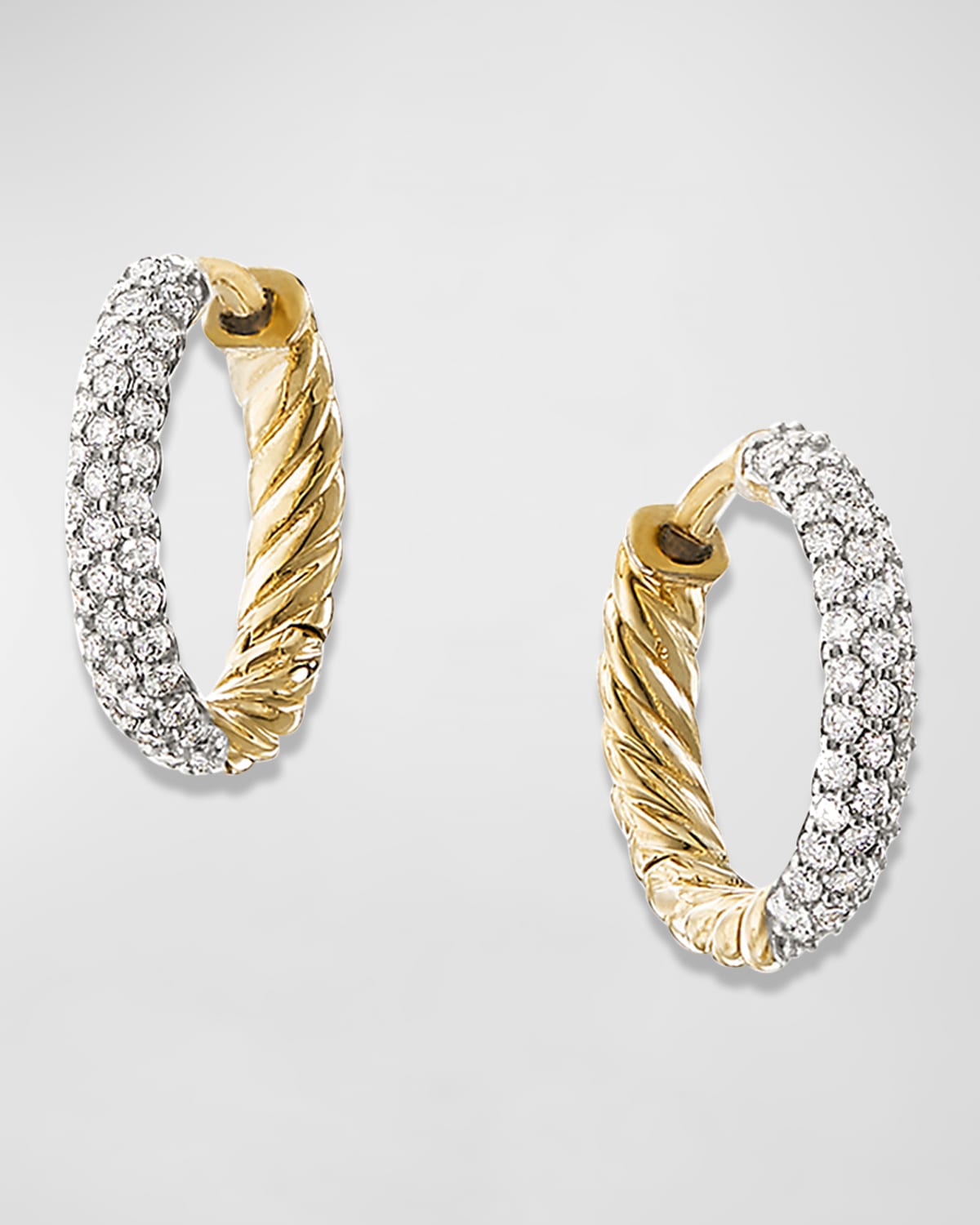 David Yurman huggie hoop earrings in 18-karat yellow gold. Pavé diamonds, 0.37 total carat weight. Earring, approx. 0.6"L (15mm). For pierced ears.