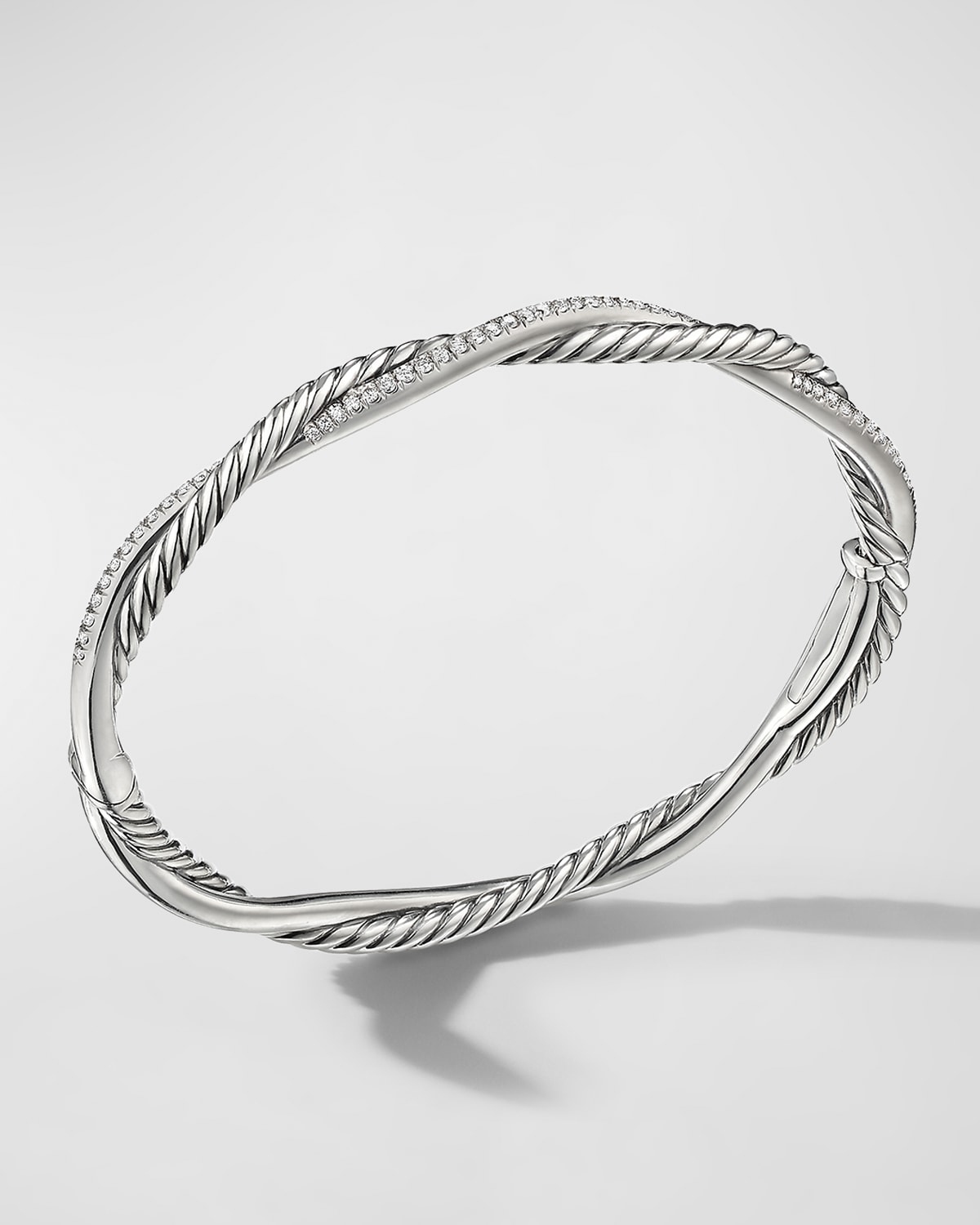 Sterling silver Pavé diamonds, 0.43 total carat weight Bracelet, 4.4mm Push-lock closure Imported