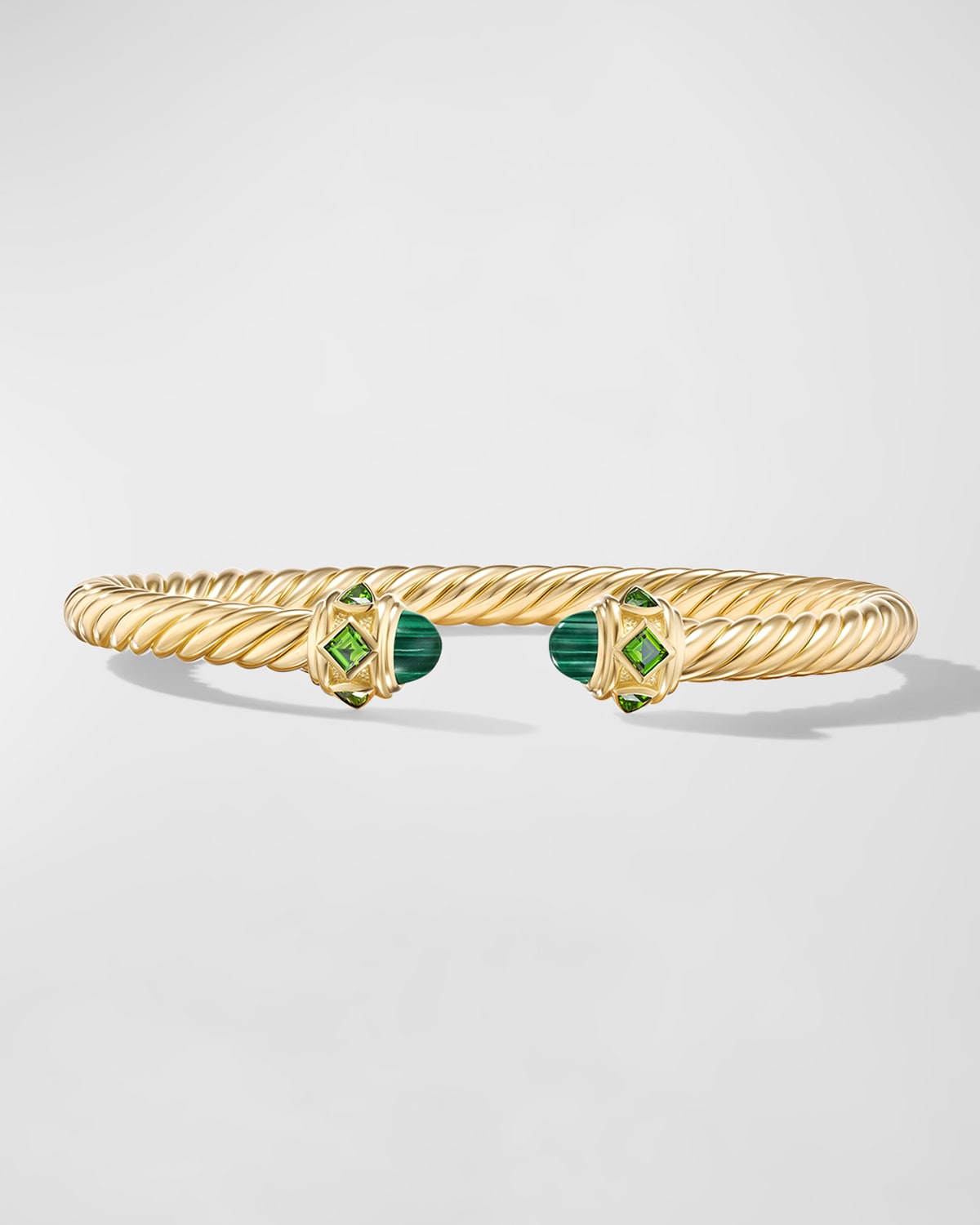 18-karat yellow gold Malachite and green/chrome diopside Approx. 5mm wide Slip-on style Made in Italy