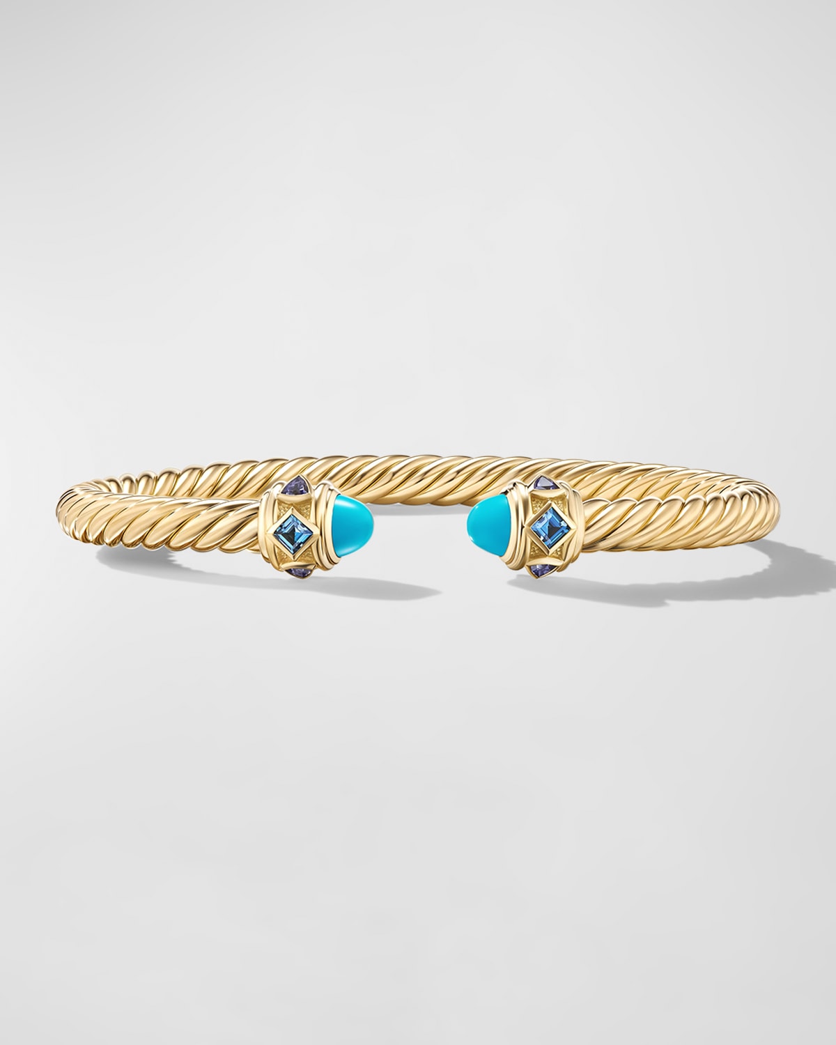 18-karat yellow gold Turquoise, Hampton blue topaz and iolite Approx. 5mm wide Slip-on style Made in Italy