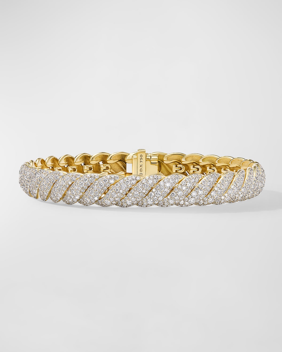 18-karat yellow gold Pavé-set diamonds, 6.92 total carat weight Bracelet, 8.5mm Box clasp Imported