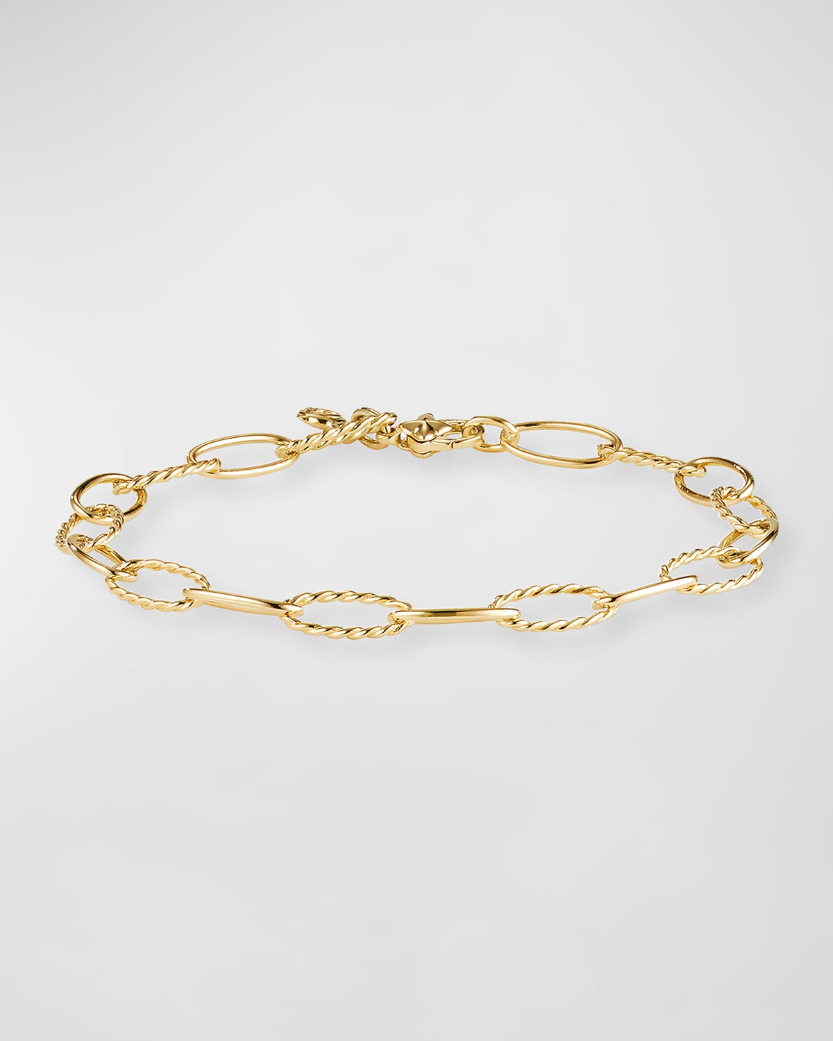 David Yurman chain bracelet from the Stax Collection. 18-karat yellow gold. Elongated oval links, alternating in texture. Lobster clasp.