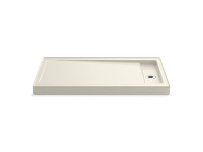 The Bellwether 60" x 32" shower base features KOHLER enameled cast iron construction for unmatched durability and ease of maintenance. The right centered drain is ideally designed for new construction. Add a removable cover over the recessed drain for a finished look.