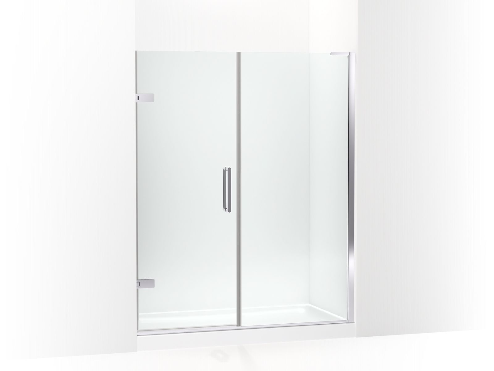 Components Frameless pivot shower door, 71-3/4" H x 58 – 58-3/4" W, with 3/8" thick Crystal Clear glass – K-27619-10L-SHP