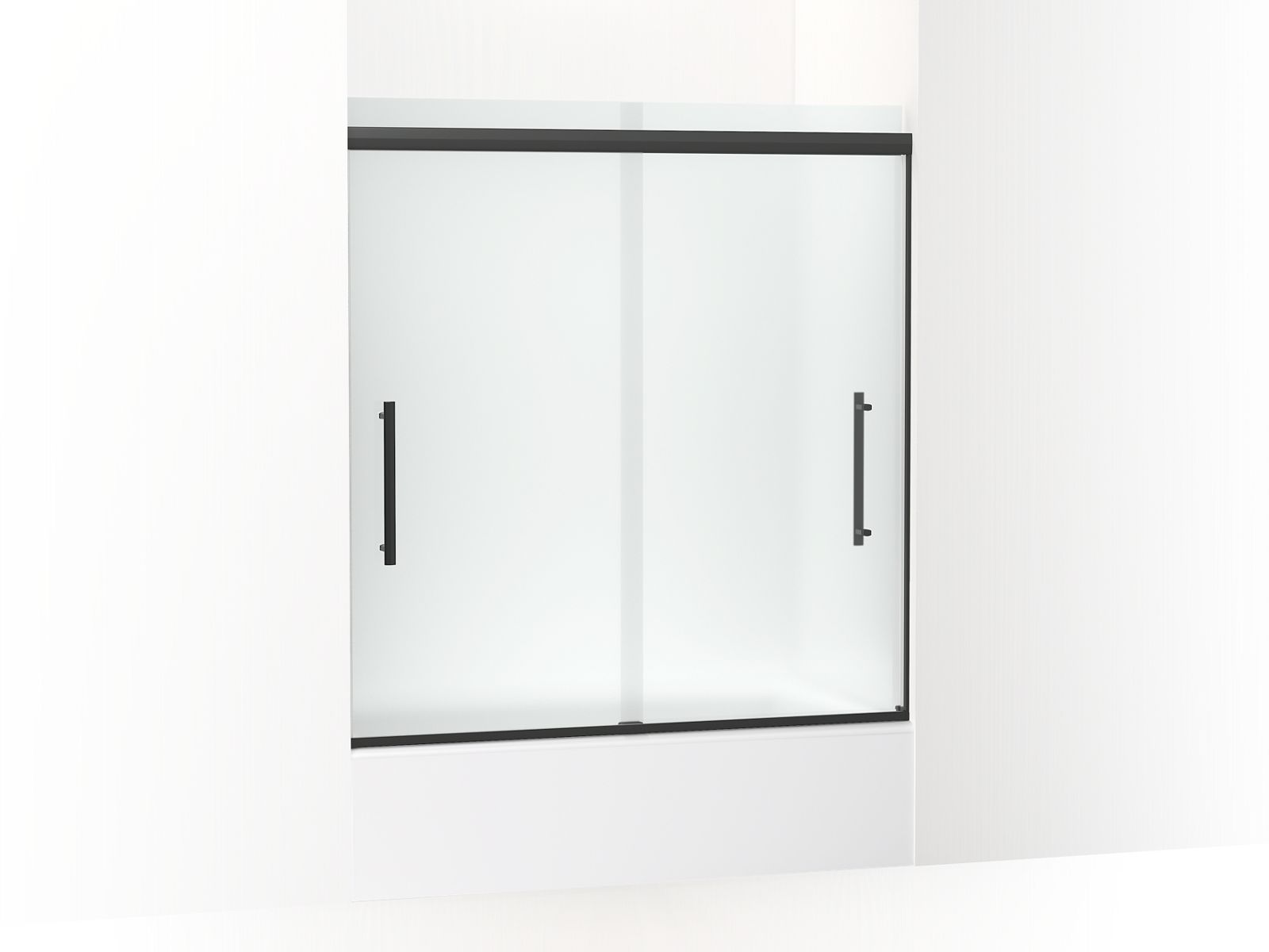 Pleat Frameless sliding bath door, 63-9/16" H x 54-5/8 – 59-5/8" W, with 5/16" thick Frosted glass – K-707602-8D3-BL