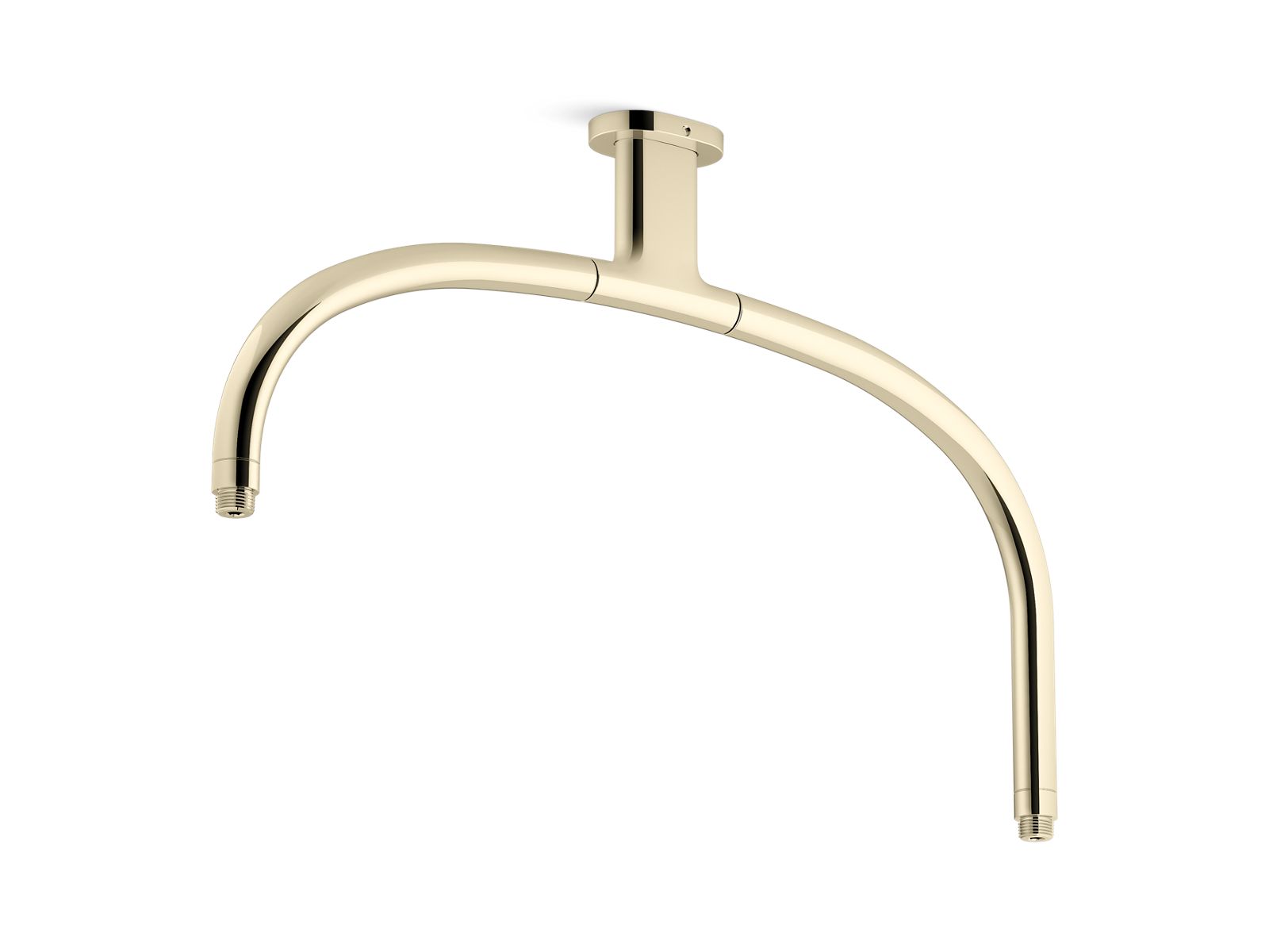 Create a unique, memorable, spa-like showering experience for two with this arched ceiling-mount dual rainhead arm. Influenced by iconic modern home design, the 14½" x 22" dual rainhead arm provides a one-of-a-kind multiple shower experience, if desired, when paired with two rainheads or a rainhead/wand handshower and hose combination (each sold separately). With durable brass construction and minimalist design, this shower accessory is versatile enough for any custom or traditional showering en